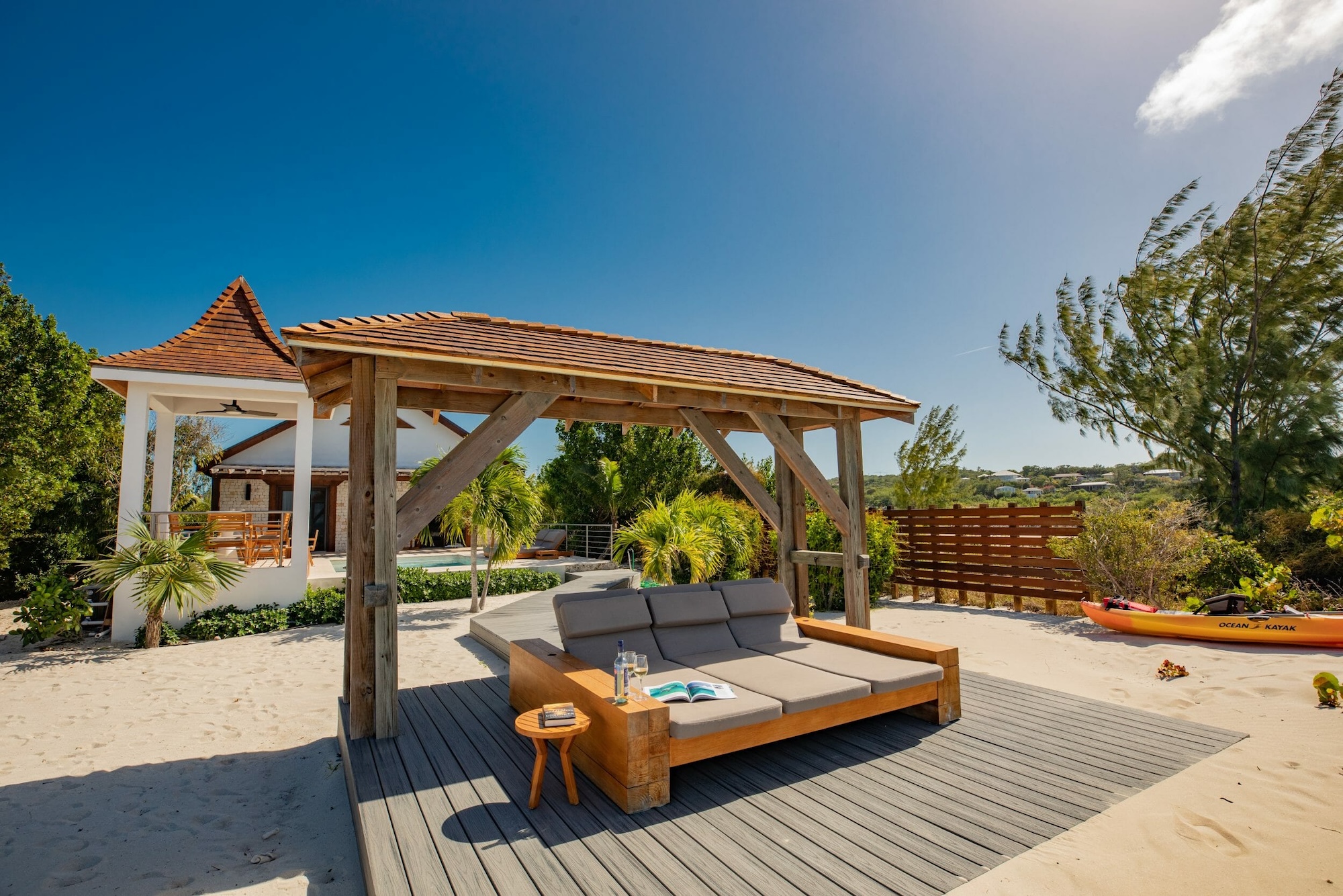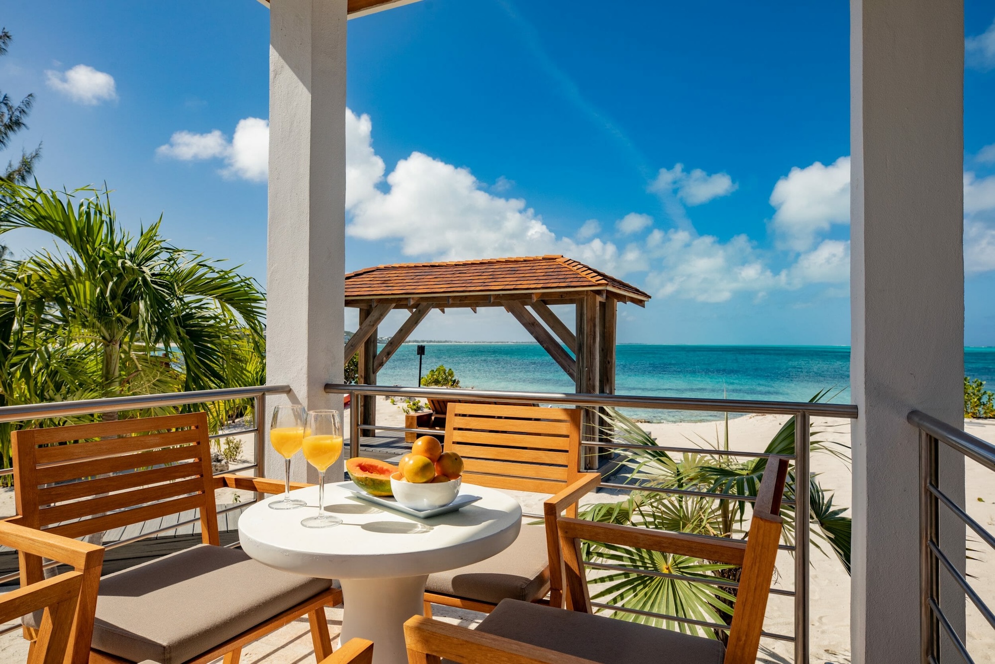 This cozy villa opens out onto a spacious private deck with its own pool, overlooking the dazzling turquoise waters of Grace Bay. The outdoor space features plush loungers, a barbecue grill, and a pagoda-style gazebo for al fresco dining — everything you need for restful days and romantic evenings just steps from your door. With Smith’s Reef, one of the island’s premier snorkelling sites, right nearby — plus a kayak and snorkel gear provided — exploring the vibrant marine life is as easy as stepping outside.