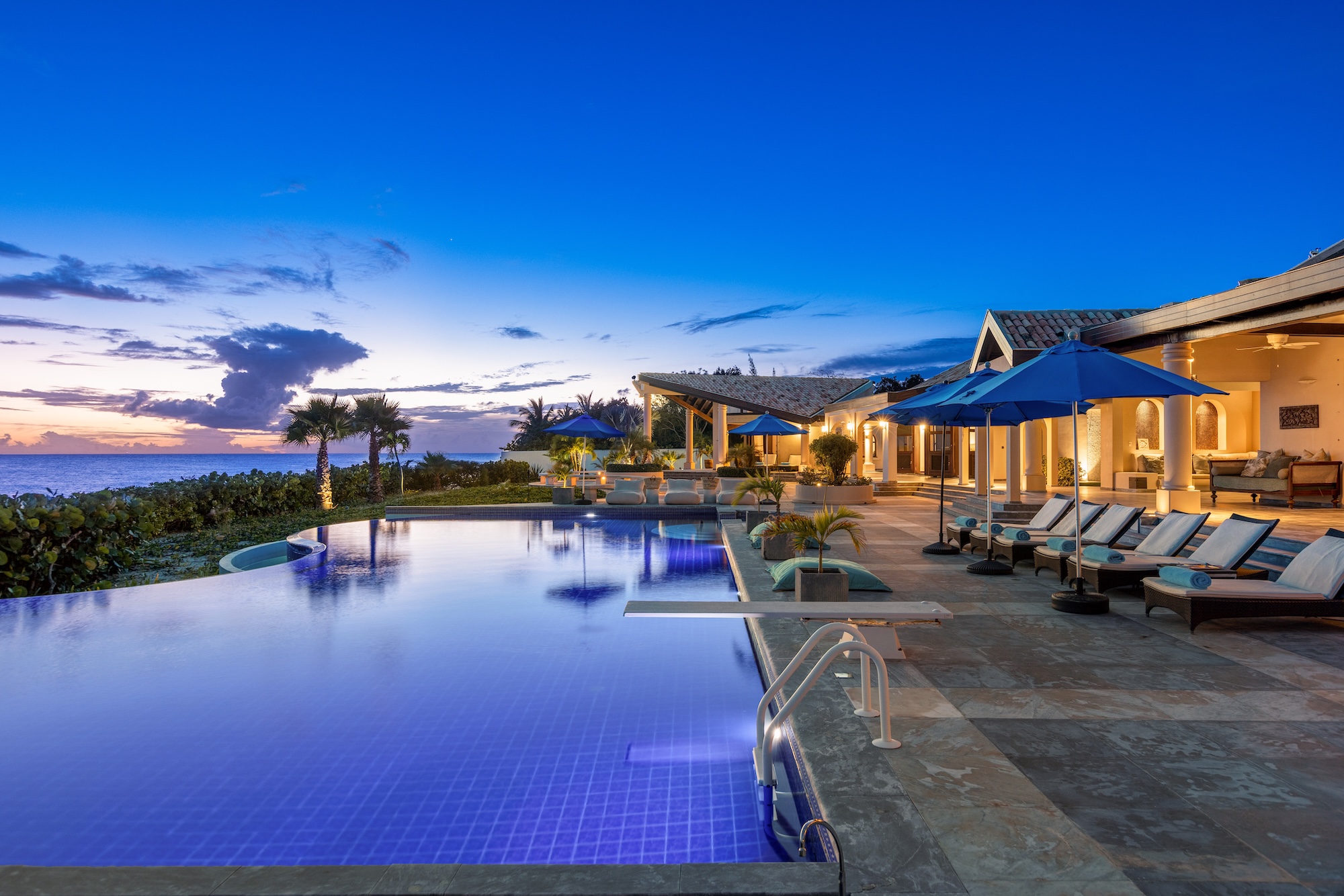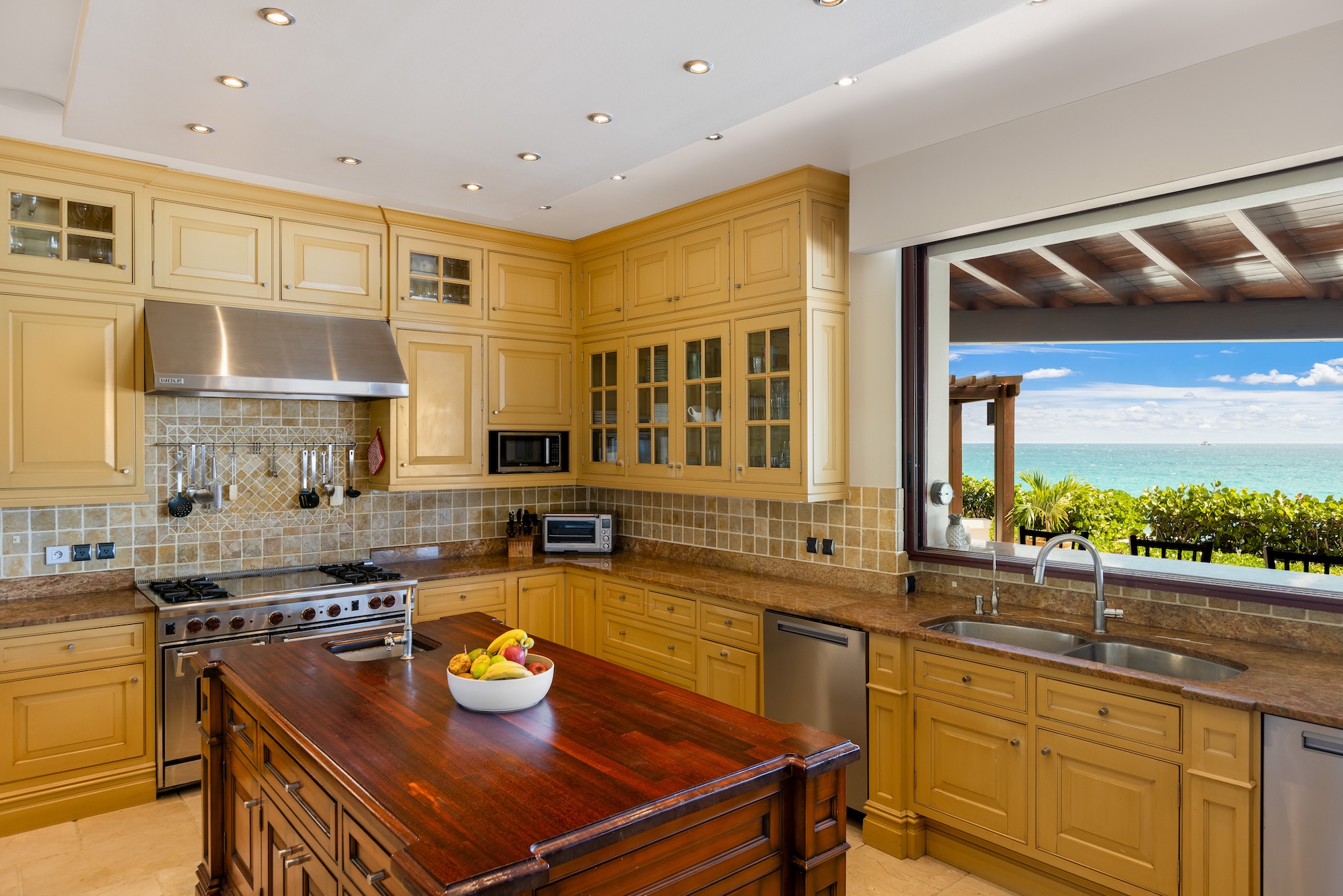 The large gourmet, fully stocked kitchen, attached to the Great Room, is a chef’s dream, and what better way to enjoy the kitchen than to have all your meals prepared by the in-house Chef and served by the villa’s Butler (3 meals per day included during the high season and the festive season – cost of food & drinks additional).