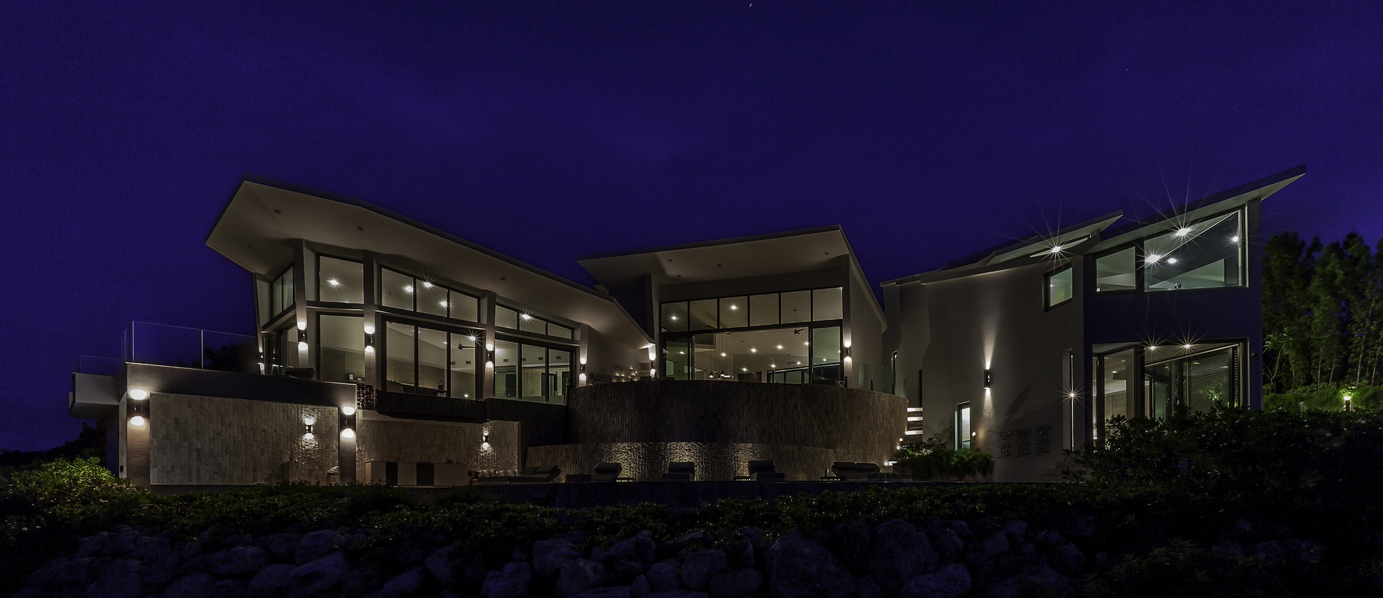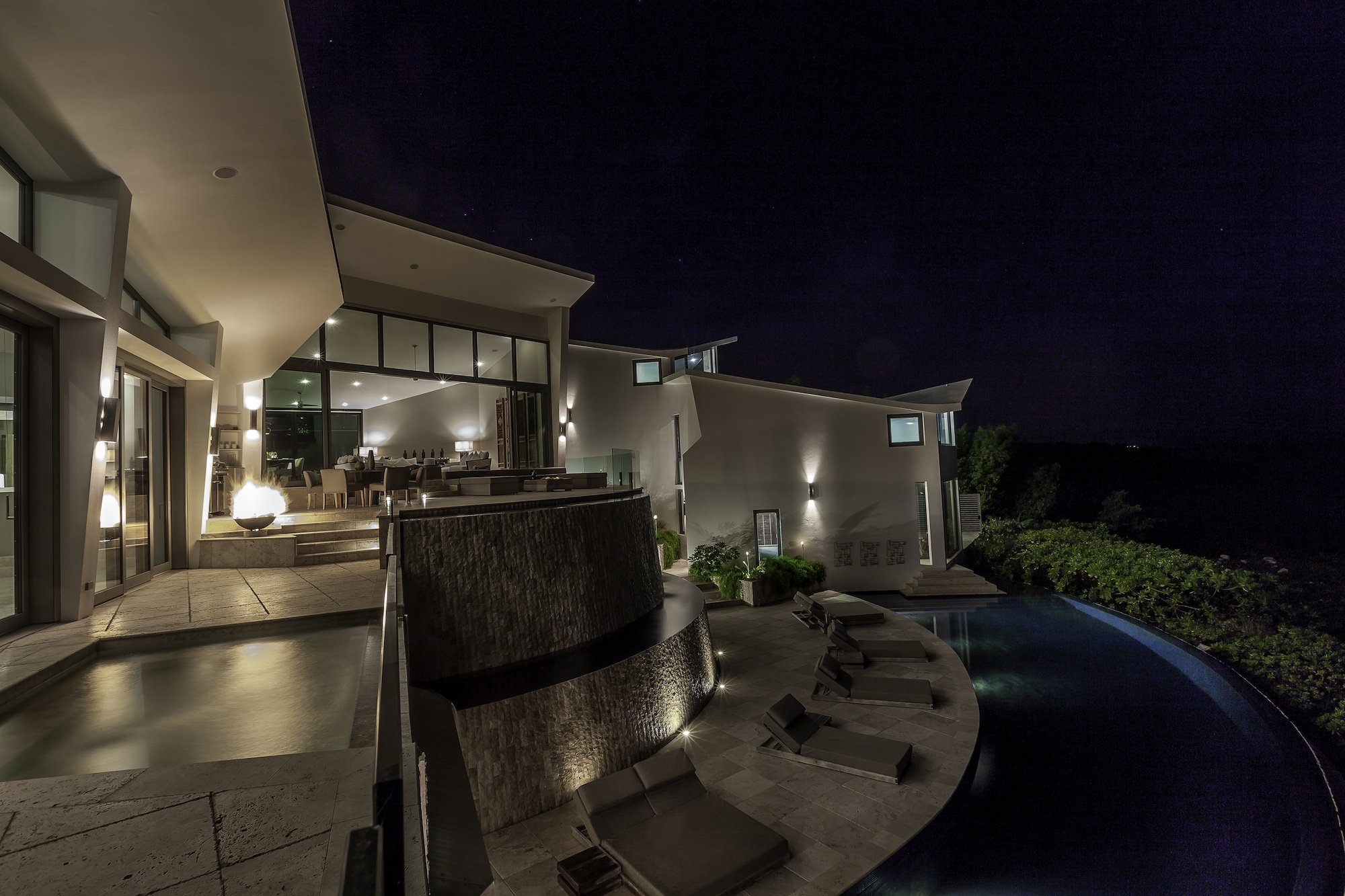 Black Garden Villa stands out among Anguilla’s luxury residences with its striking silhouette, defined by dramatic sloped and angular rooflines.