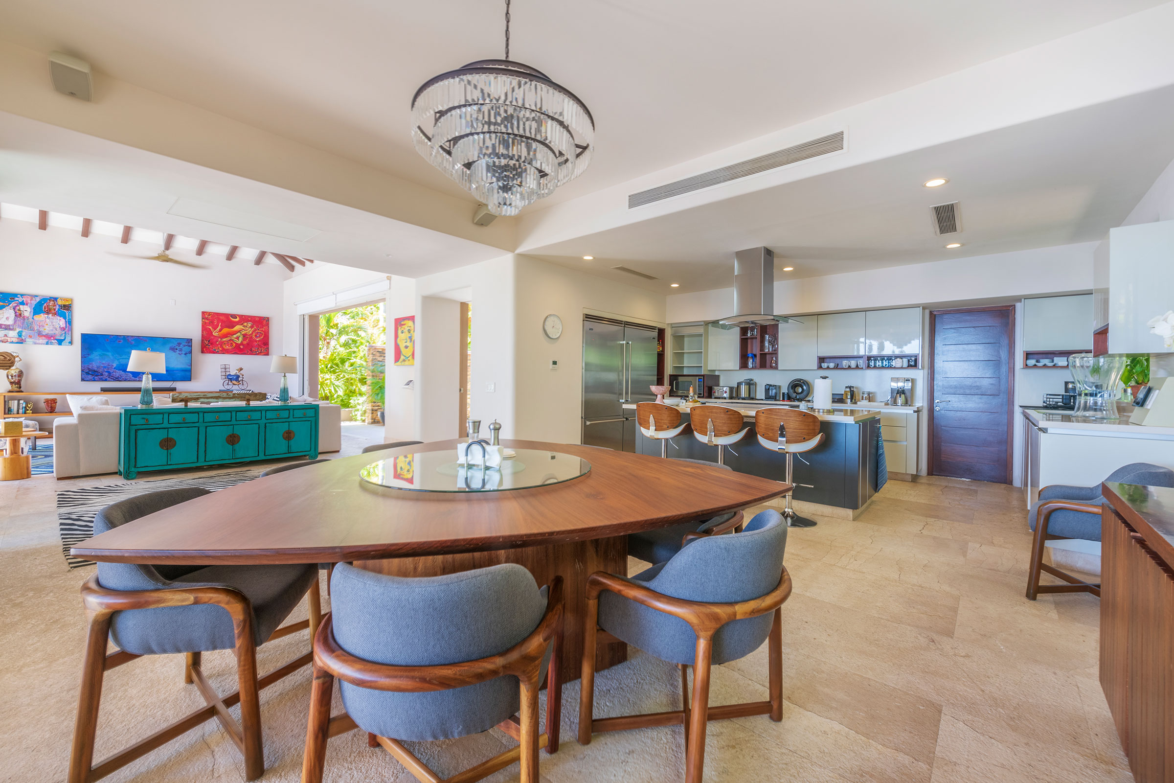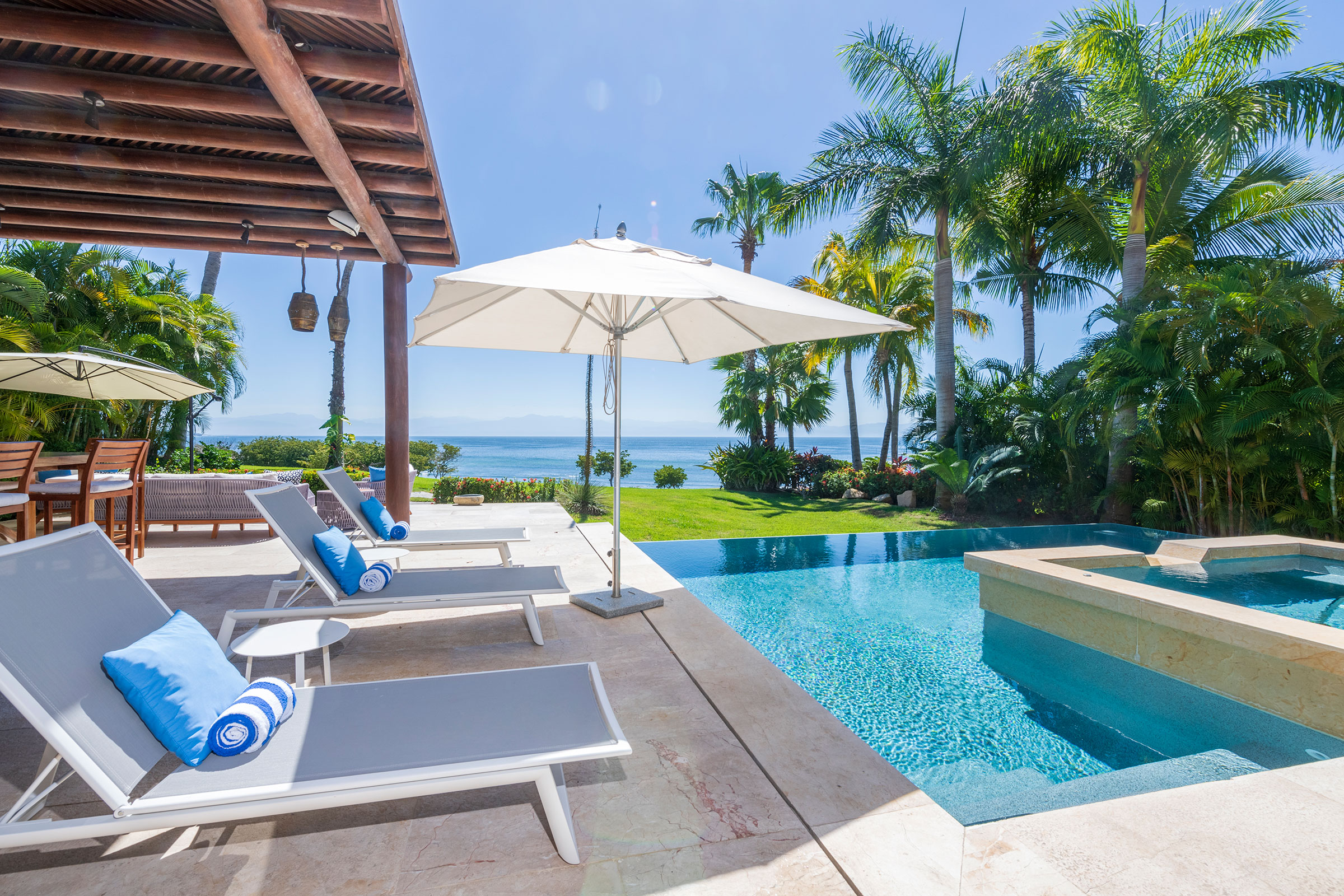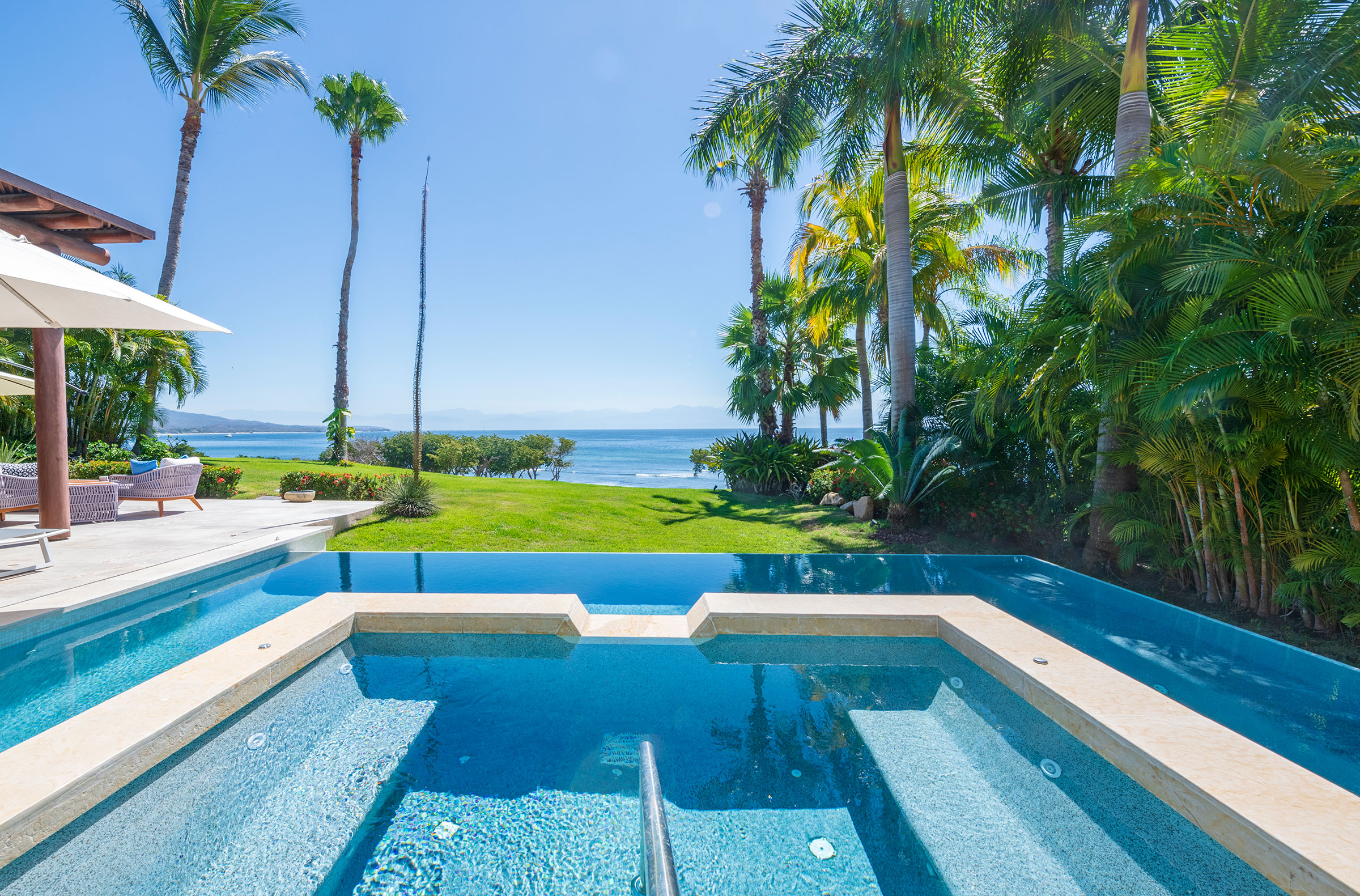This modern residence is located inside gates of Punta Mita’s “El Encanto” community. It has a spectacular view framed by the path of Jack Nicklaus Bahia Golf Course and the tropical palm trees. This home has four bedrooms, all ensuite, so you can experience comfort and luxury in a contemporary design. With the outdoor areas, you’ll enjoy the spectacular view all day and night in either the infinity pool or the lounge area.