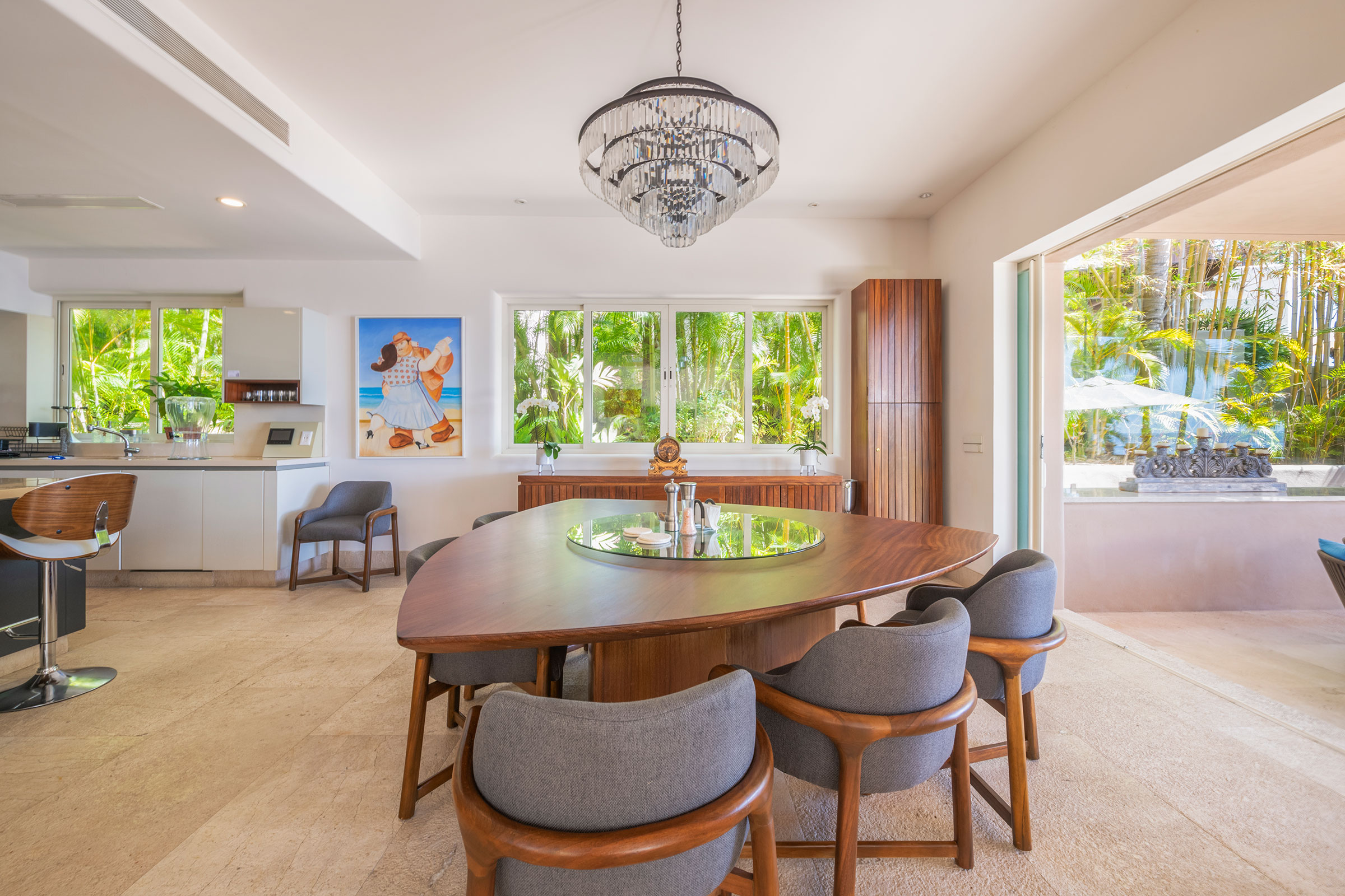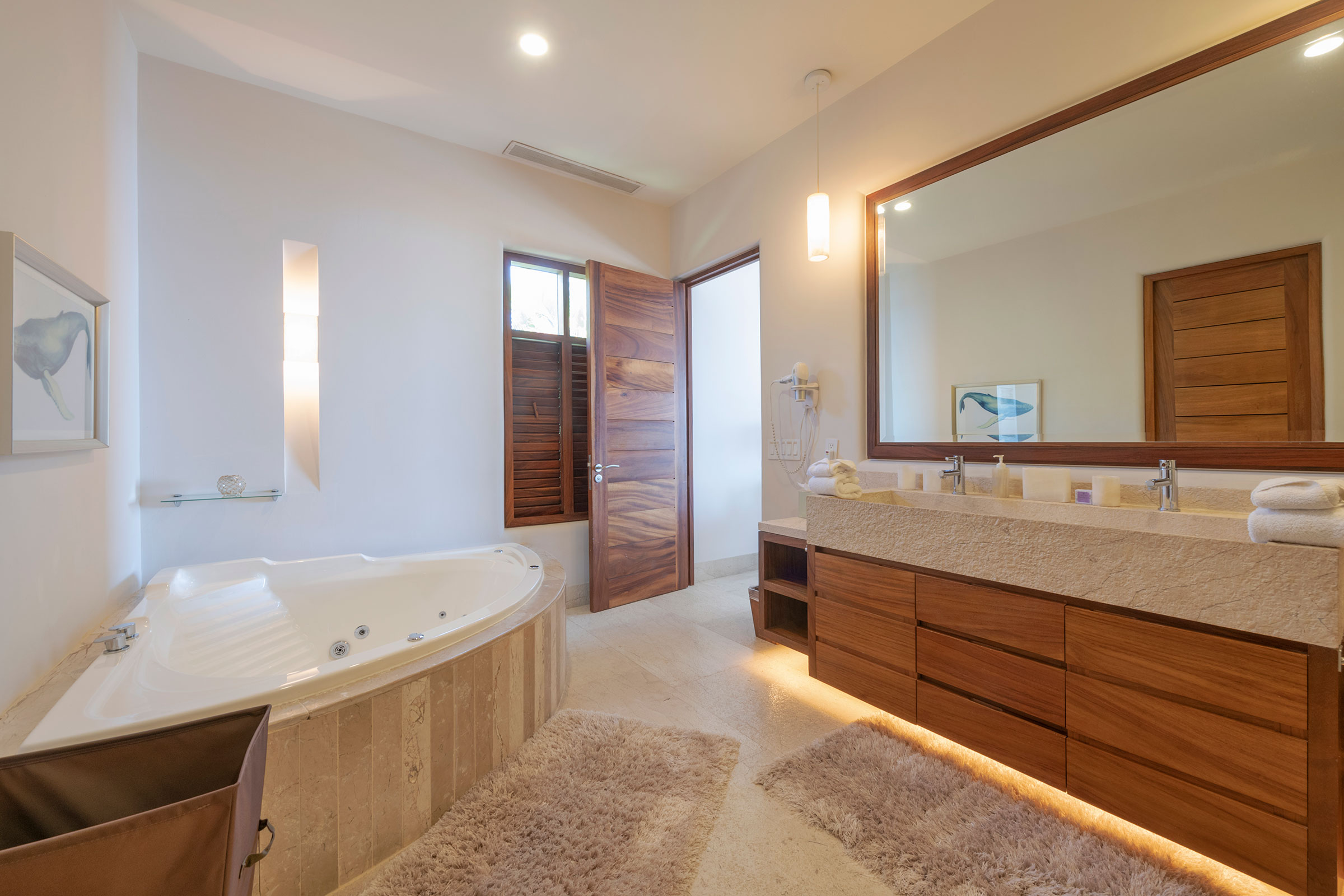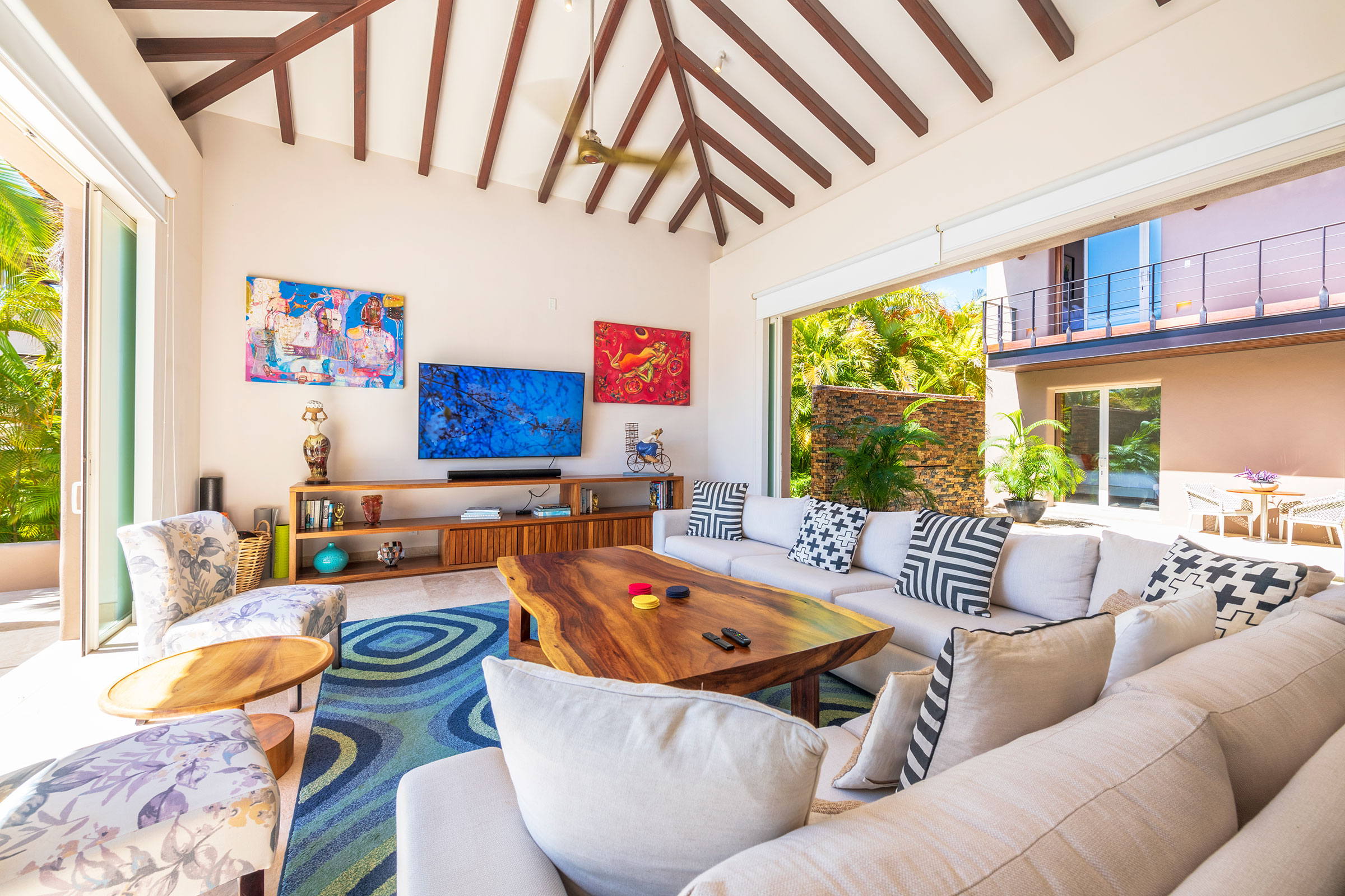 This modern residence is located inside gates of Punta Mita’s “El Encanto” community. It has a spectacular view framed by the path of Jack Nicklaus Bahia Golf Course and the tropical palm trees. This home has four bedrooms, all ensuite, so you can experience comfort and luxury in a contemporary design. With the outdoor areas, you’ll enjoy the spectacular view all day and night in either the infinity pool or the lounge area.