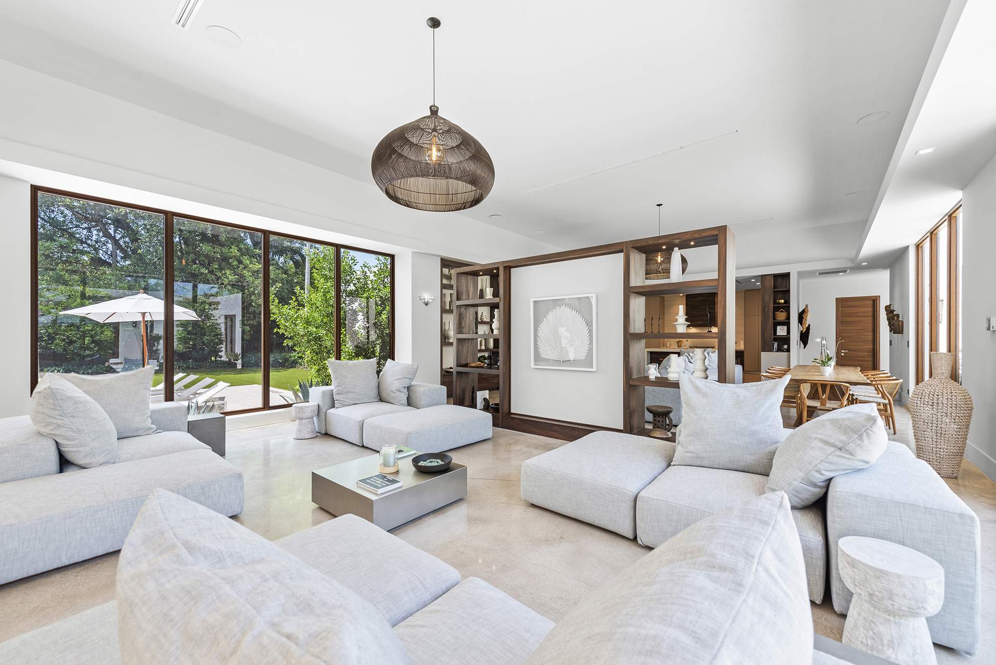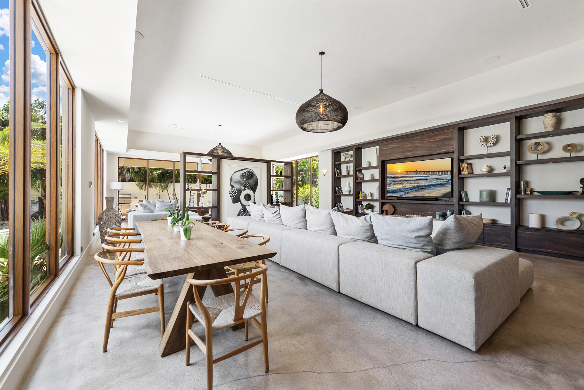 The entryway of Villa Maroc introduces a refined blend of Moroccan-inspired design and contemporary Miami style. Clean architectural lines and an open-concept layout create a bright, effortless flow throughout the home, framed by the lush tropical landscaping of Miami Shores. The result is an inviting setting for poolside cocktails, relaxed lounging, or private meals prepared in the gourmet kitchen. Conveniently located just minutes from Biscayne Boulevard and the 79th Street Causeway, the villa offers quick access to Wynwood, Downtown Miami, and Miami Beach.