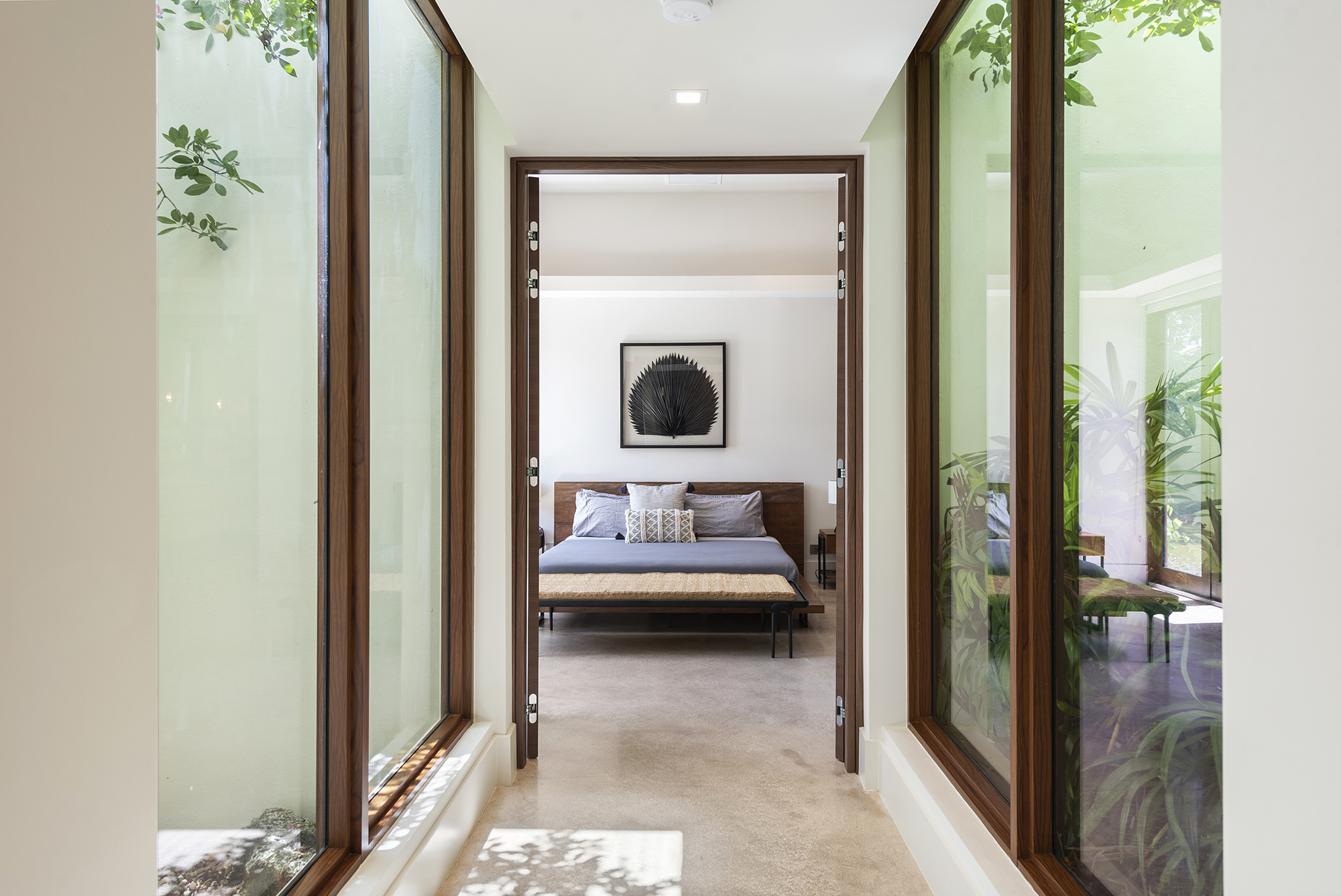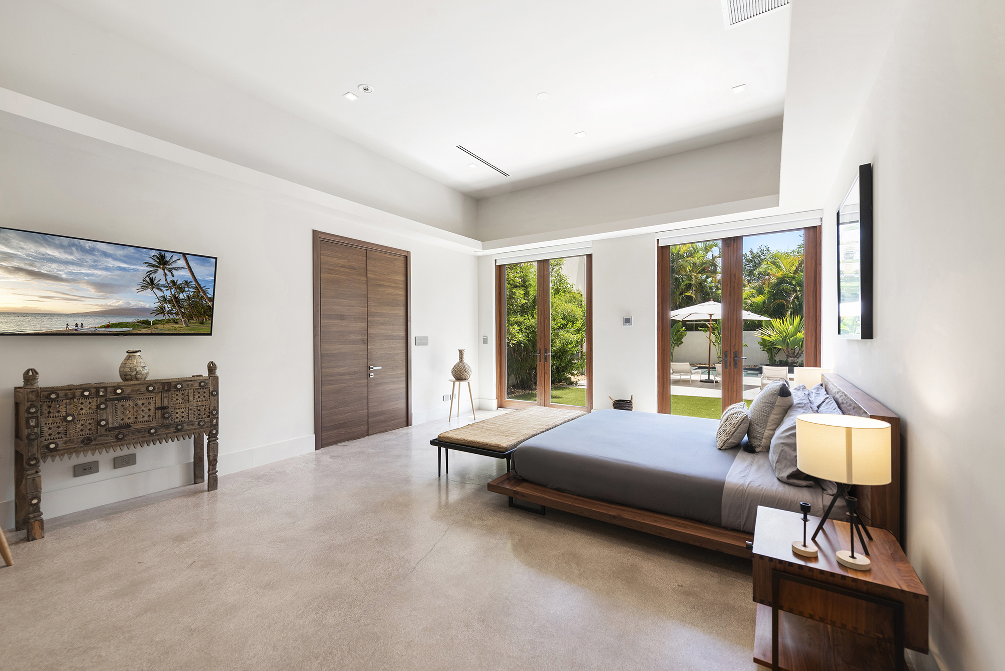 This single-level villa includes six bedrooms, each with direct access to a patio or terrace. The primary suite, overlooking the pool, features a king bed and a spacious ensuite bathroom. The bedroom configuration is well-suited for families, business travelers, and groups of friends seeking privacy and comfort while remaining close to Miami’s many attractions.