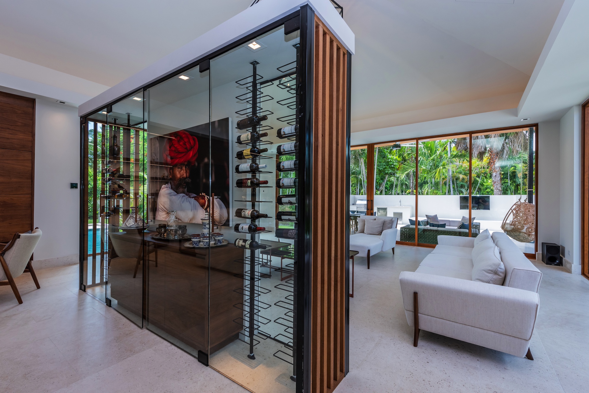 Perfectly positioned just off Biscayne Boulevard and near the 79th Street Causeway, the villa places you within a short drive of Wynwood, downtown Miami, and Miami Beach, giving you effortless access to the city’s top cultural, dining, and entertainment hubs. Indoors and outdoors blend naturally across expansive living areas, from shaded lounges beneath towering palms to curated seating crafted in Indonesia. The pool terrace and veranda create an inviting atmosphere for grilling, gathering, and lingering late into the evening under the soft glow of the floodlit water.