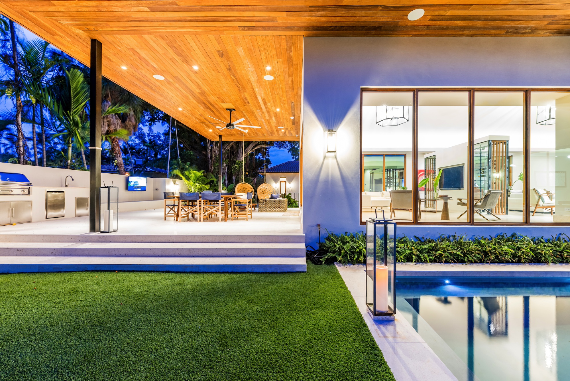 Designed with sleek contemporary architecture and a breezy, open layout, the home offers a relaxed, resort-like feel surrounded by vibrant South Florida greenery—ideal for long poolside afternoons, al fresco dining, or unwinding with a drink in hand.